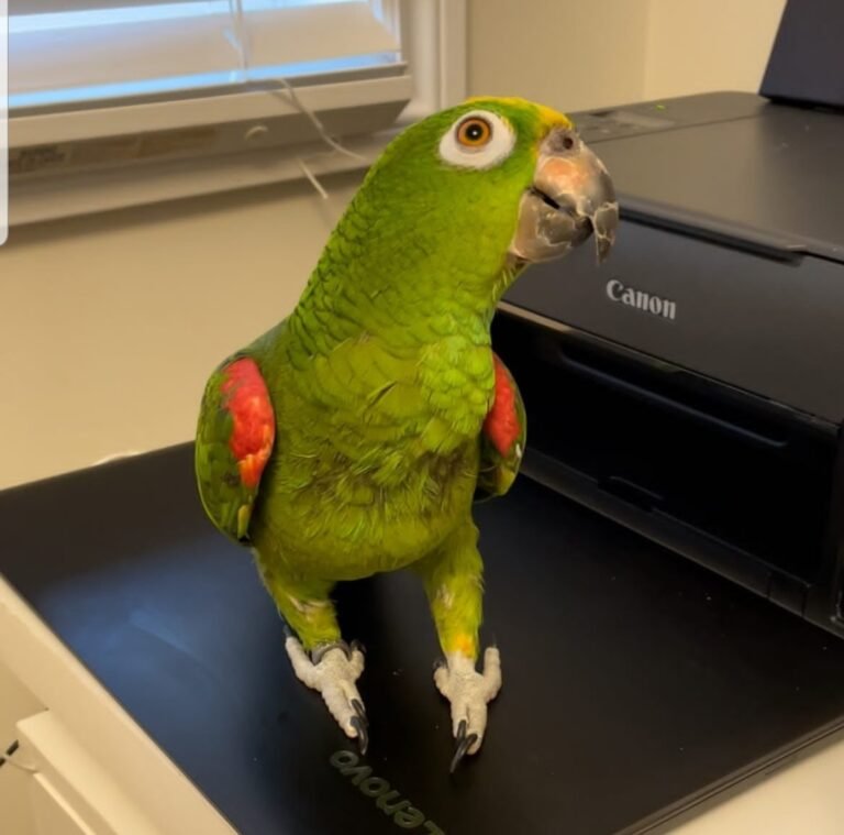 “Hello! My name is Bunny! I’m a cute, cuddly, talking and loyal parrot that is looking for that special family to join. My ideal family will take me for walks in the park, provide me with yummy treats, rub my cute parrot belly, and give me lots of hugs and kisses. In return, I will provide you with many years of unconditional love! All you have to do is call that number over there and say you want to bring me home. Give me a chance and I will be sure to leave paw prints on your heart!”