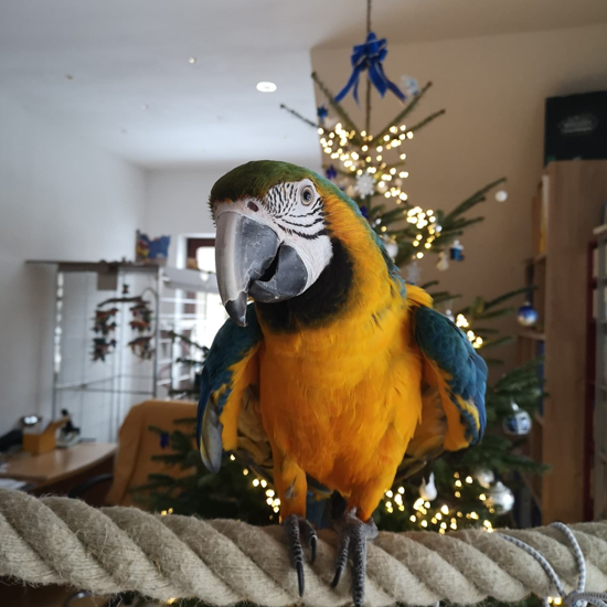 Blue and gold macaw parrot female 8 Months old come with his dna certificate micro. fully hand tamed, she would say her name and many other things, repeating words we speak. Does step up making so many sound wising love to stay outside his cage love fresh fruit and veg as well. Used to children and a busy household.