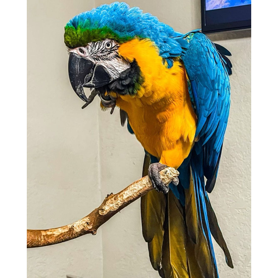 Shadow, seen in the picture above, is a handfed Blue Macaw. He originally came to us at the age of about 3 weeks and then quickly became everybody’s favorite, as is typical for a Blue Macaw!